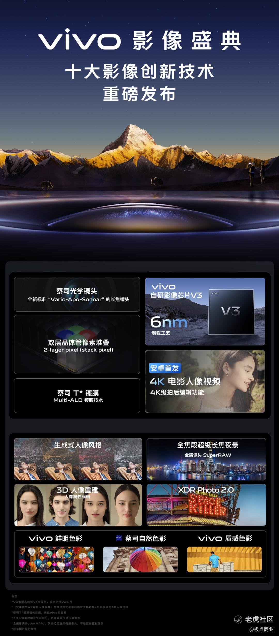影像研发,道阻且艰。影像长赛道上,vivo再次抢先布局,发布全新制程6nm自研影像芯片V3、推出AIGC四季人像模式、与蔡司联合探索新结构的长焦镜头、并对T*镀膜技术进行升级。