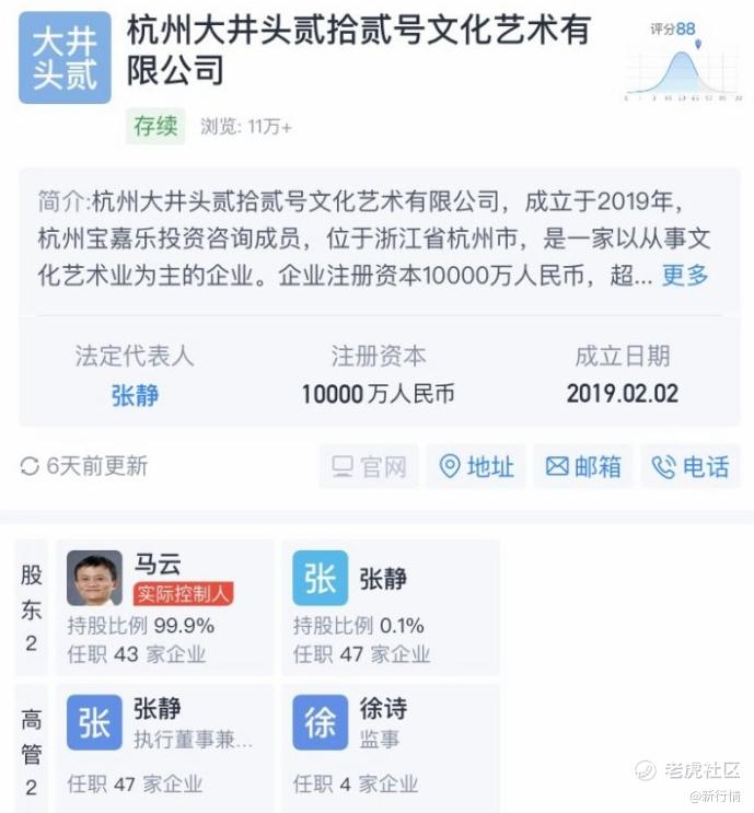 其中,杭州大井头贰拾贰号文化艺术有限公司,成立于2019年,该公司的实际控制人为马云,持股比例达99.9%。