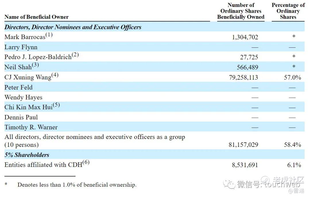 此次分拆后,王旭宁持有SharkNinja公司57%股权,CDH持股为6.1%。