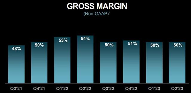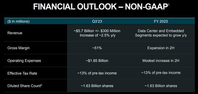 非GAAP口径下,剔除生产成本后,AMD预计三季度毛利率约为51%,略高于二季度的50%,和分析师预期的51.2%总体一致。