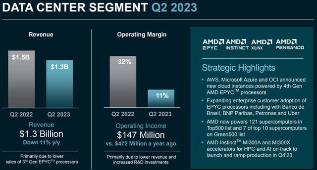 二季度AMD的数据中心业务同比转为负增长。