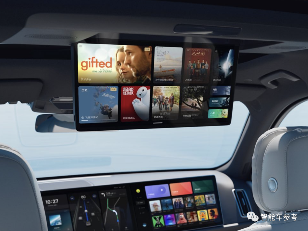 并且在后排还有一块一样的15.7英寸娱乐屏,供二三排乘客使用。除了能看电视打游戏,还能通过语音和手势进行交互和控制。