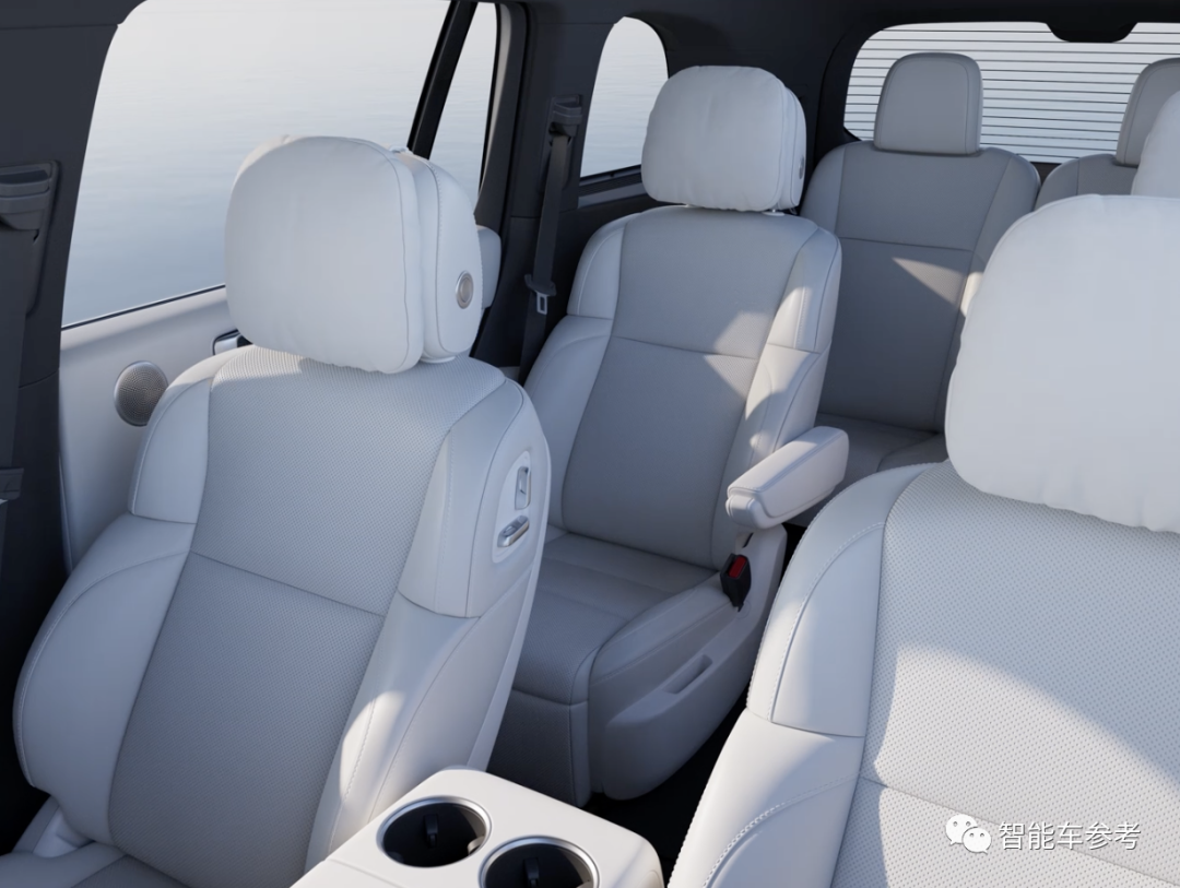 每个座位都设计了杯架、储物格,第二排老板座还带四向电动腿托。
