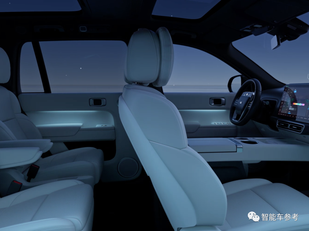 另外,全景天窗、电动遮阳帘;后排座椅按不同角度放倒从而形成小憩、大床模式;256色氛围灯;车窗、天窗双层夹胶玻璃、全车电动电吸门等全是标配。