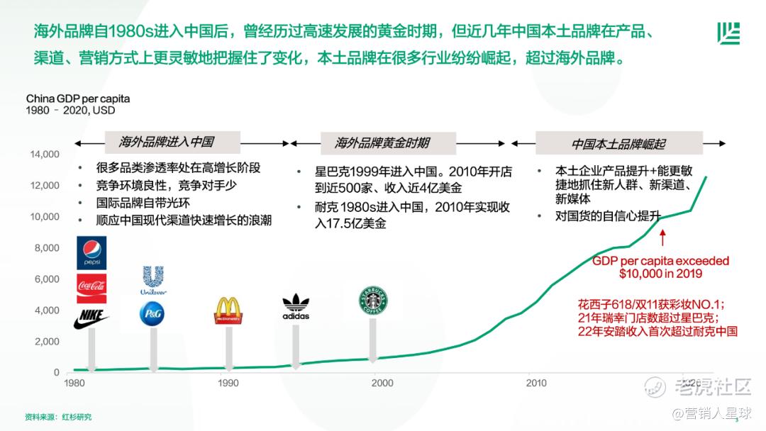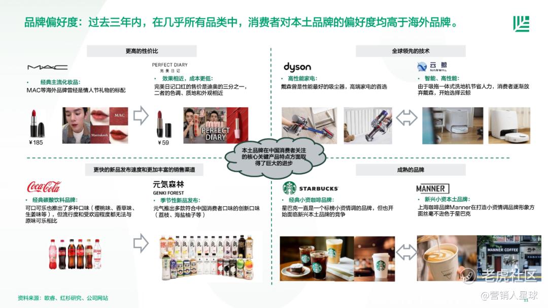 海外品牌自1980s进入中国后,曾经历过高速发展的黄金时期,但近几年中国本士品牌在产品、渠道、营销方式上更灵敏地把握住了变化,本土品牌在很多行业纷纷崛起,超过海外品牌。