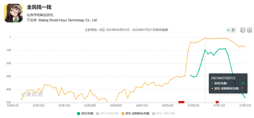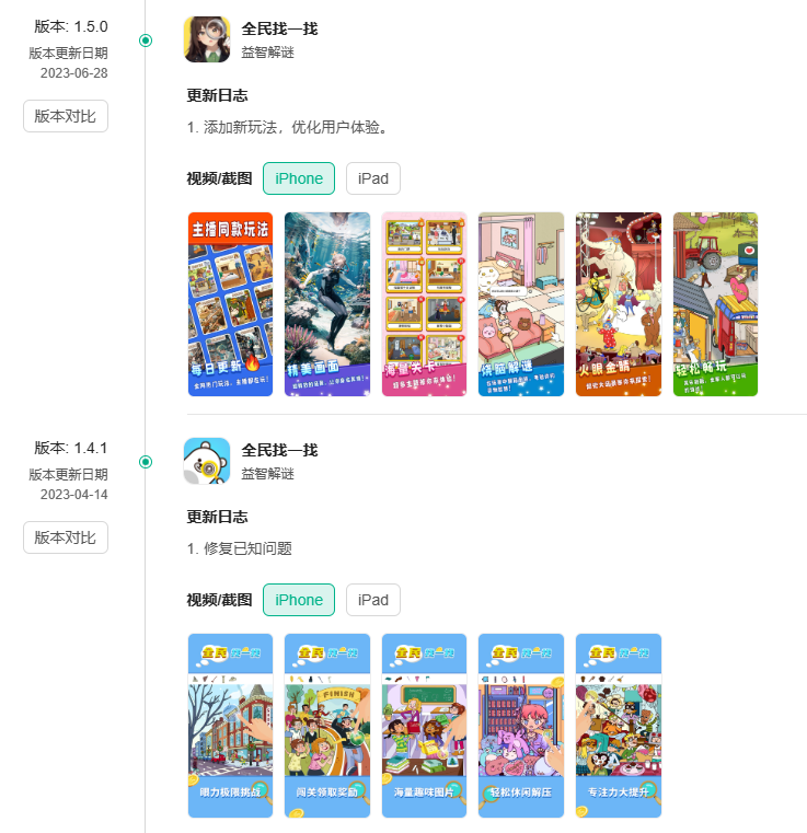 观察版本更新情况可以发现,游戏在6月底时大变样,玩法从单一玩法变成了和《全民找茬2》相似的游戏合辑形式。这次排名的突飞猛进,可能也是蹭上了后者的快车。