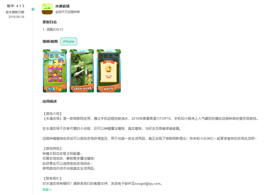 不过游戏在后来逐渐失去了热度。现在游戏的小程序版本已经下架,App Store版本则已经找不到可以通过实景直播看到植物的功能,种出来的植物仅能用于提现。目前游戏的最新版本更新于2019年9月,宣传图中仍有实景直播的画面。