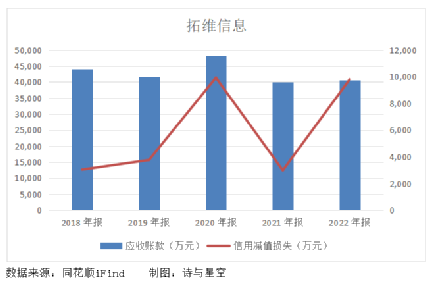 2022年除了商誉减值损失直接导致拓维一夜回到解放前以外,坏账损失的影响也不容忽视。