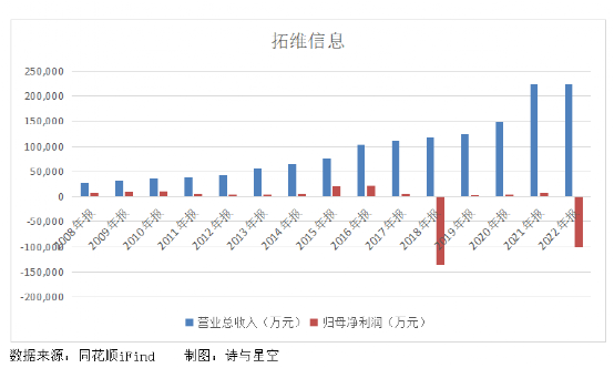拓维全年获得营收22.37亿,同比增长0.29%;归属于上市公司股东的净利润亏损10.19亿,同比减少1335.09%。