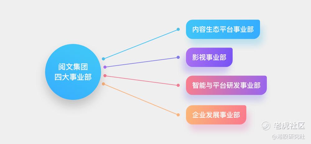 影视事业部、智能与平台研发事业部各司业务与技术的职能。企业发展事业部发挥统筹IP内外部运营的作用。内容生态平台事业部,打通阅文的内容与起点读书、QQ阅读等产品,并进一步把动漫、有声书这些延伸产物容纳进来,把它们统一到IP这个核心上。借此,一个IP的受众将可以便捷地消费全形态的IP。