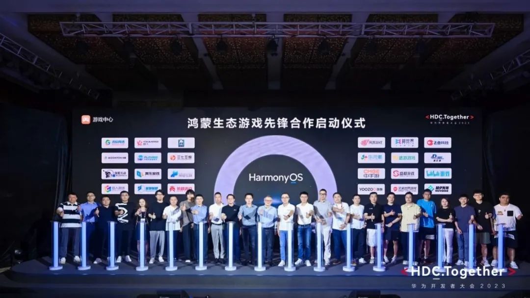 因此在今年的HDC游戏服务论坛上,出现了十分重要的一幕画面,网易、乐元素、三七、阿里、完美世界、Cocos、英雄互娱、中手游等20多家游戏公司出席参加了鸿蒙生态合作启动仪式。华为给了一个非常壮士的定语:“游戏先锋”。事后,多家游戏公司还发布了专门的新闻稿,表态对华为鸿蒙的支持。
