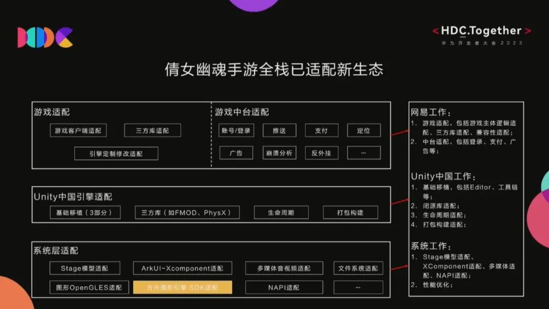 同时,网易也在HDC展示了首款适配开源鸿蒙生态的Unity中国引擎游戏《倩女幽魂》手游。乐元素则在HDC上分享了耗时半年左右《开心消消乐》的鸿蒙适配全过程。