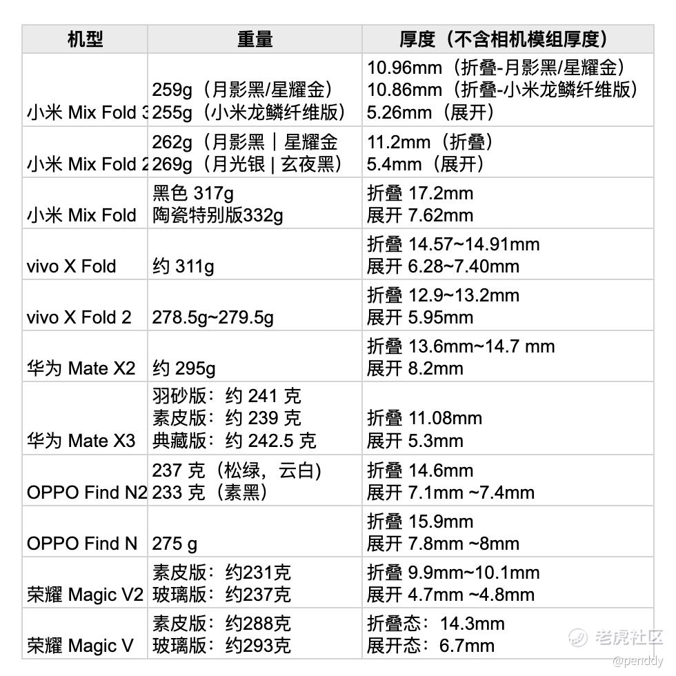 各家折叠屏重量和厚度大比拼!你觉得小米的Mix Fold 3的重量可以接受么?