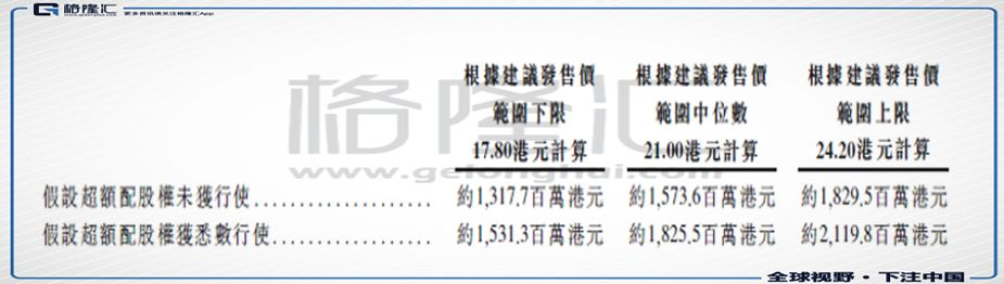 以每股21港元(中位数)来计算,在不行使超额配售权的情况下,扣除包销等上市开支,预计将融得15.73亿港元。