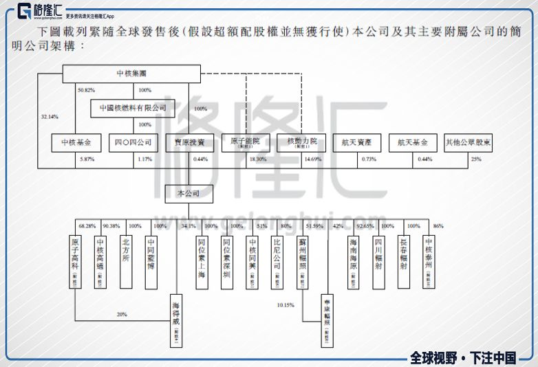 上市后,中核集团仍为公司的单一大股东,直接控股32.14%,透过中核基金、四〇四公司、宝原投资、原子能院、核动力院,合计持股72.61%。