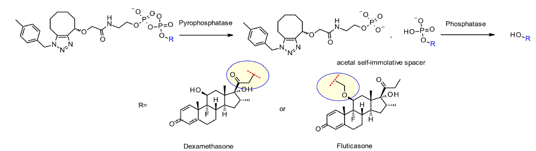 图4 磷酸酶和焦磷酸酶裂解linker的结构及其释放机制[2]