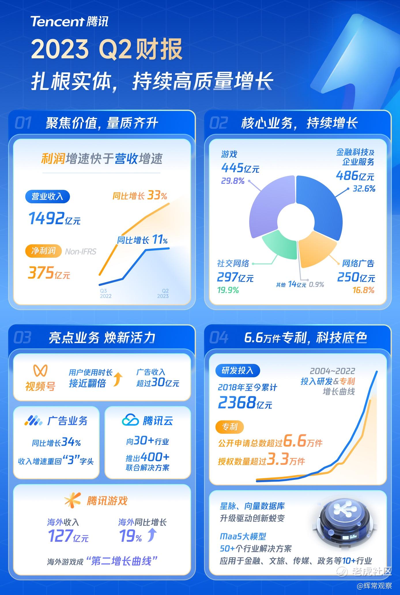 腾讯业已找到业务增长的「第二条曲线」,并且,这样一条曲线,正在不断地被强化。它不仅为我们描绘着腾讯的新未来,同样正在不断地打开我们对于腾讯的新想象。透过腾讯2023年第二季度财报,我们可以非常明显地看出,腾讯的「第二条曲线」,正在不断地被印证与强化。