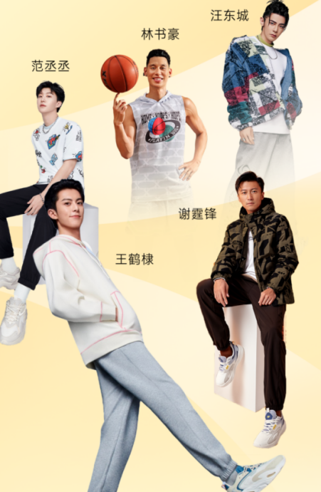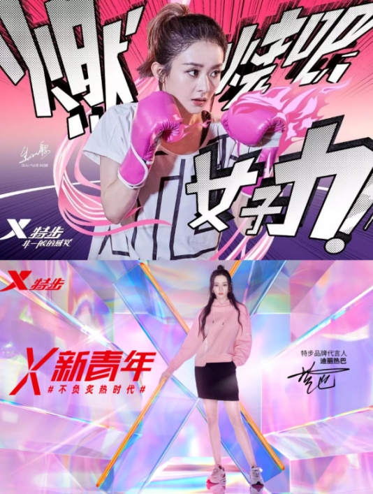 近年来,为了迎合新生代市场,特步邀请了赵丽颖、迪丽热巴、王鹤棣等艺人和篮球明星林书豪、马利克·比斯利当代言人,推出“X青年”口号及品牌联名活动,与迪士尼科米蛙联名的范丞丞同款,就受到年轻群体的热烈追捧。
