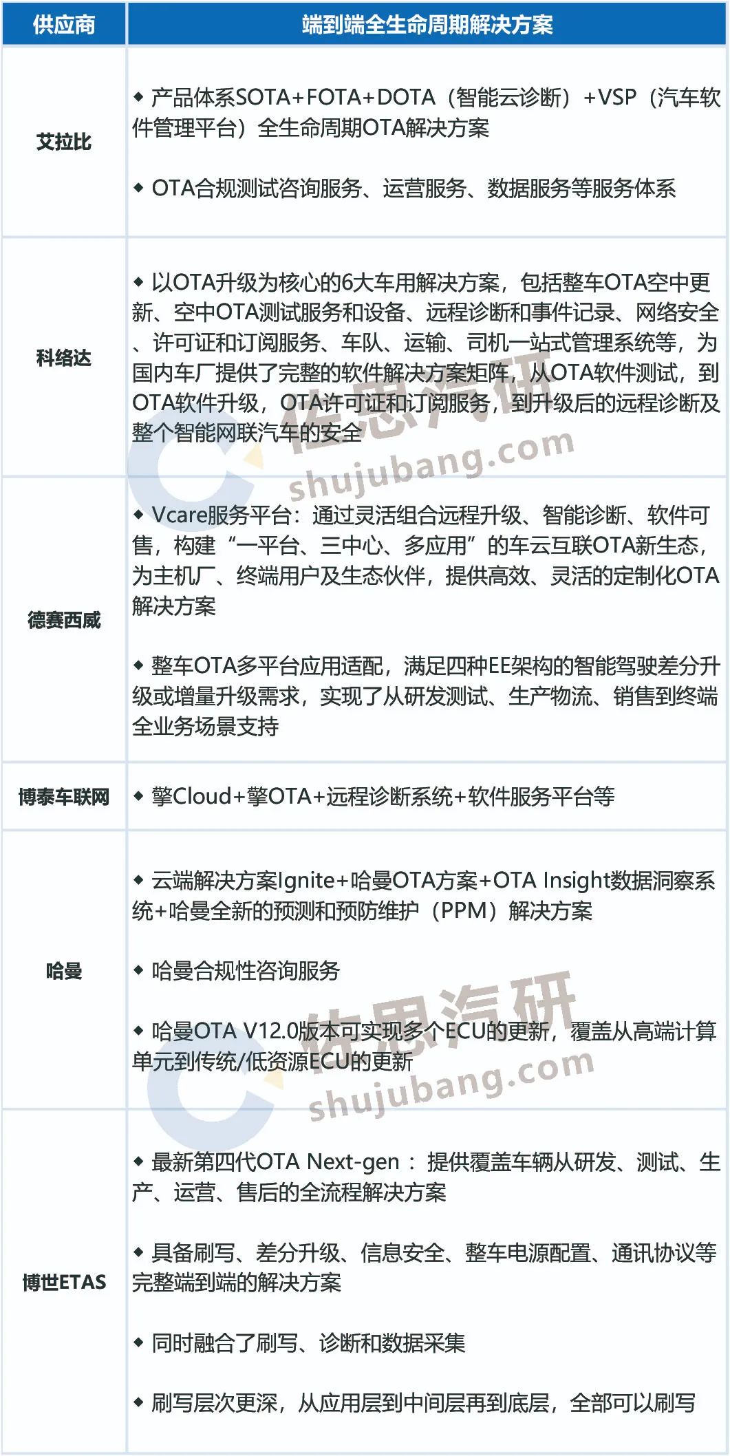 主要供应商OTA全生命周期解决方案
