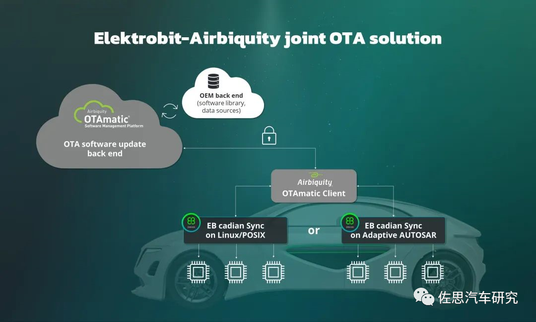 2022年12月,Elektrobit与Airbiquity宣布联合推出一款预集成的OTA解决方案,将Elektrobit的车载OTA更新软件产品与Airbiquity的多ECU OTA软件管理平台相结合,支持OEM更轻松地为其车队采购和构建一个端到端的OTA系统解决方案。