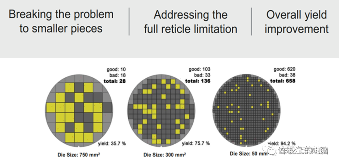很多人引用这张图,芯片Die尺寸750平方毫米的良率只有35.7%,50平方毫米是94.2%,实际没有这么夸张。英伟达的A100的die尺寸高达826平方毫米,H100的die尺寸也有814平方毫米,远超750平方毫米。英伟达不知道Chiplet的优势么?英伟达当然知道,但英伟达也只在HBM部分用Chiplet,在GPU部分从未使用Chiplet,一直坚持monolithic,并且将来也不用。原因可以看英伟达发表的一篇论文《GPU Domain Specialization via Composable On-Package Architecture》(https://arxiv.org/pdf/2104.02188.pdf)。