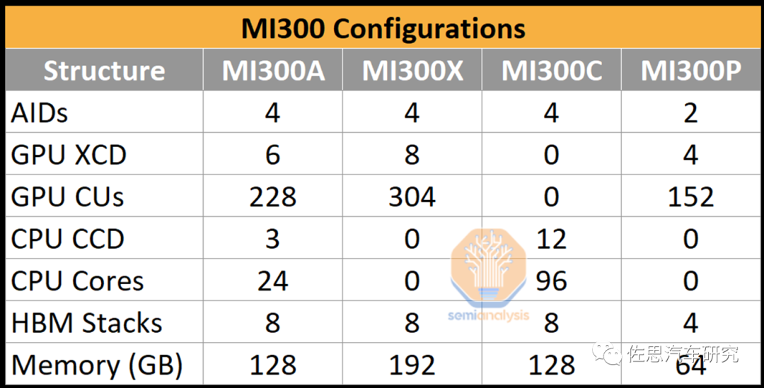 当然有人会说AMD最新的MI300X是8个GPU做的Chiplet,用于LLM领域,证明Chiplet可以用于高密度计算领域。不过,很少人注意到AMD的MI300系列都有至少2个AID,这正是秘密所在。