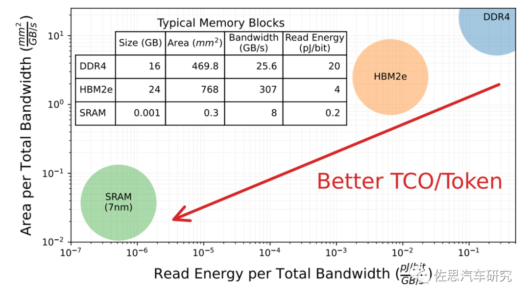 微软的设计也不用昂贵的HBM,而是用SRAM,这一点类似特斯拉的Dojo D1。特斯拉用台积电最昂贵的SOIC 3D封装,有354个核心,440MB的SRAM,而微软的想法是将这354个节点独立为一个个Chiplet,直接封装在PCB板上,比特斯拉的SOIC成本估计能降低90%。SRAM将存储所有训练产生的权重和中间激活值以及KV缓存,这种设计有个缺点,那就是只能用于训练,训练阶段是为了产生权重模型的,无需一次性存储全部权重模型参数,可以分散到多个核心上,几百MB的SRAM就够;但在推理阶段则不同,它需要每次都导入完整的权重模型参数,需要几十到几百GB的SRAM,这么大的SRAM一整张12英寸晶圆都无法容纳。而车载领域显然是不需要训练的,只需要推理。这个Chiplet与其说是Chiplet不如叫多核心SRAM。