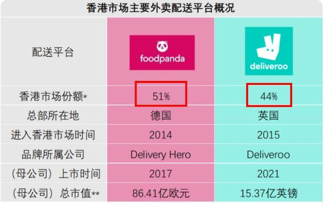 在KeeTa进入香港之前,香港外卖市场主要由来自德国的FoodPanda和英国的Deliveroo两大外卖平台主宰,它们共同占据了市场的绝大部分。两者之间,而FoodPanda更占上风。