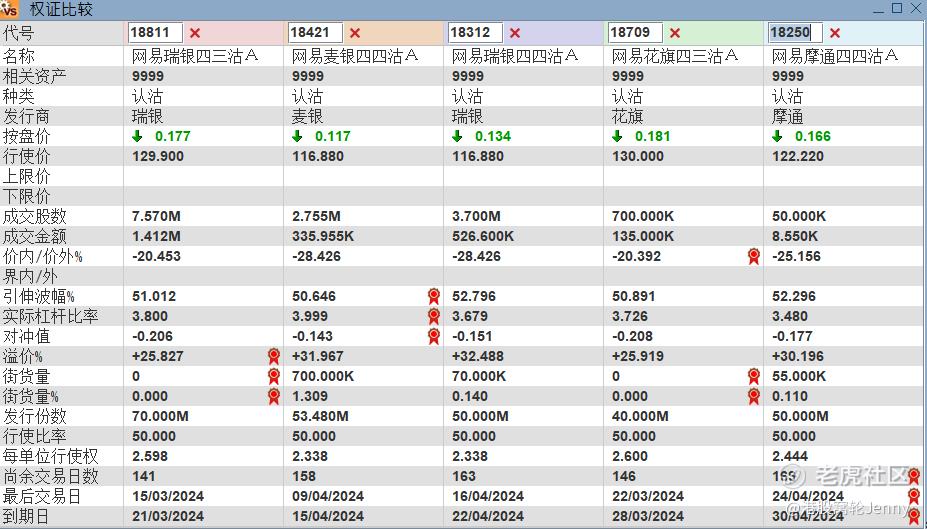 市场上也有投资者会利用牛证捕捉交易机会,因为牛证杠杆往往比认购证高,不过,投资者要留意,牛证有收回机制,所以对于收回价的考虑应比较保守。收回价在支持位155.8以内的牛证,产品69507,2024年4月到期,溢价0.87%,杠杆11.5倍。