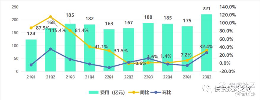 费用端来看,本季度费用同比增长32.4%,比收入增速略少一点,主要是销售及市场费用增加比较多,销售及市场费用146亿元,同比增长62%,财报解释主要是用户激励,推广和广告开支增加导致,研发费用只由50亿增加到52亿,行政费用21.4亿元同比还减少了14.6%, 这部分应该也是之前人员优化省下来的。