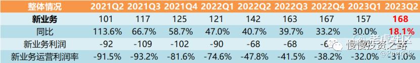 3、美团的新业务就没有很亮眼了,增速已经放缓,亏损环比也是增长的,美团优化和美团买菜面临的竞争还是比较大,这块需要大量的补贴,目前来看新业务扭亏还是有比较长的路要走。