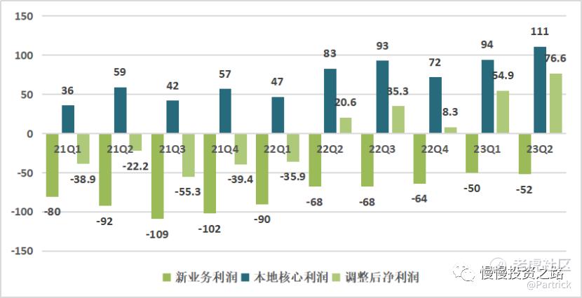 按业务来看,本地核心业务经营利润为111亿,新业务为-52亿,亏损同比有所缩窄,但环比增长了2个亿,也就是核心本地商业这块已经非常稳健了,后面净利润的提升一方面靠核心本地商业利润的增长以及新业务的减亏。