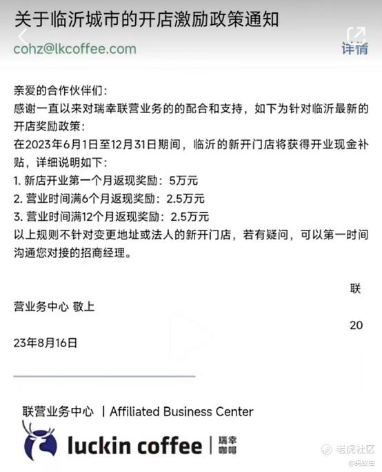 于是,就出现了开头所述,瑞幸对临沂新开门店联营商的政策激励。
