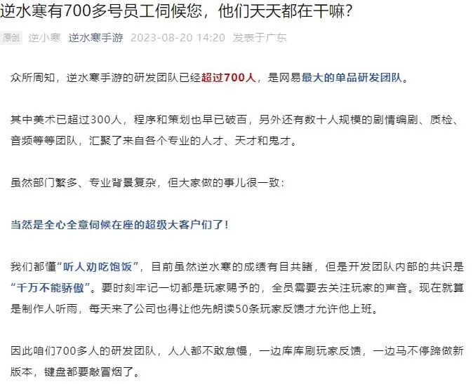 近期发布的网易Q2财报更直接点名“备受好评”的《逆水寒》手游:“再次彰显了我们不懈努力的成果,为玩家带来创新、优质、丰富多样的游戏品类。”网易管理层评价游戏团队:“在更新迭代传统MMO品类上卓有成效”。
