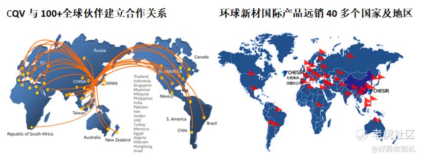 目前环球新材国际的产品已经远销亚洲、欧洲、非洲及南美洲超过40个国家及地区,但仍然以国内销售为主。而CQV是高度国际化的特殊市场领先玩家,在海外高端市场拥有渠道优势,已建立了遍布全球的销售网络。双方优势互补,将进一步提升彼此在海内外市场的渗透率。