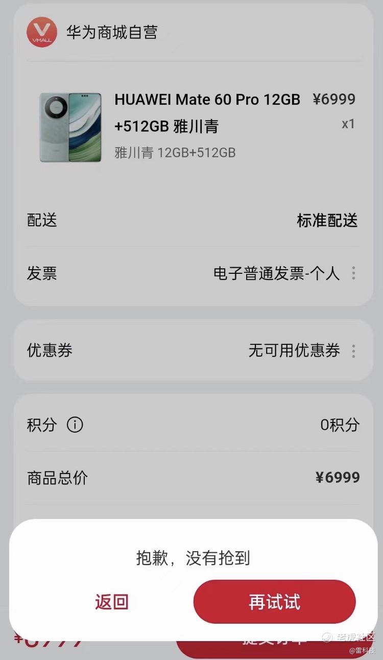 今日,华为终端官方微博宣布,「HUAWEI Mate 60 Pro先锋计划」正式开启。中午12:08,华为Mate 60 Pro上架官方商城,12GB+512GB版本定价6999元。