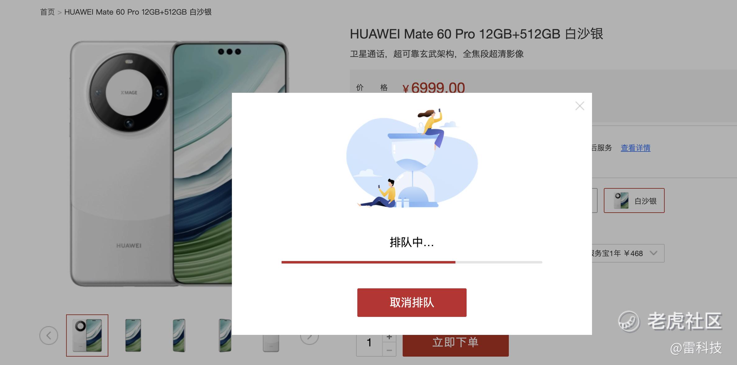 中午12点,Mate 60 Pro在华为官方商城开售,不到半小时就进入了排队状态。由于是预售产品,目前暂时没有显示售罄。与此同时,华为线下旗舰店也释出展示样机,开启线下预定。
