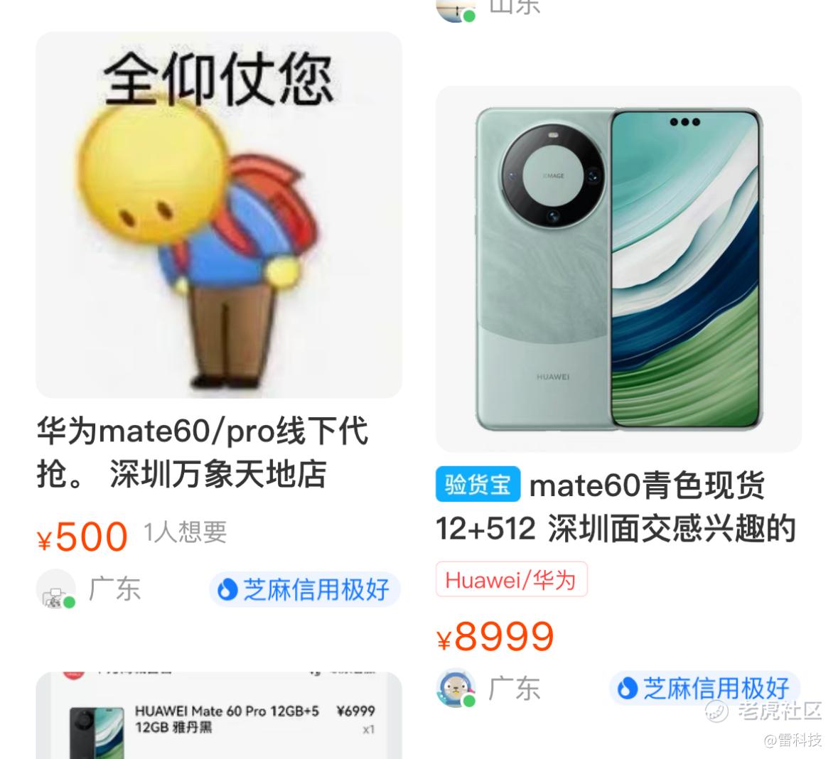 据了解,二手交易平台闲鱼已经出现大量Mate 60 Pro,除了线上订单代抢之外,还有部分加价转购,最高价8999元,比官方售价高了2000元。