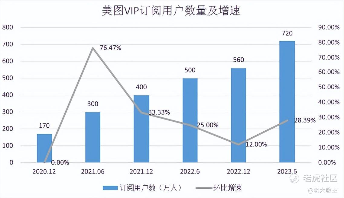 在这720万名用户中,我们并不知晓其中多少是产业级客户,但我们可以通过2022年末订阅业务560万人以及2021年以来每半年个人新增订阅放缓推测:2023H1美图个人订阅数量应不超过620万。换言之,美图产业级客户可能已达百万之众!