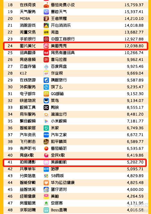 QusetMobile评选的《2023半年度中国移动互联网实力价值榜》TOP50赛道用户规模No.1 APP中,美图秀秀和美颜相机继续保持图片美化、拍照摄影垂类的冠军。