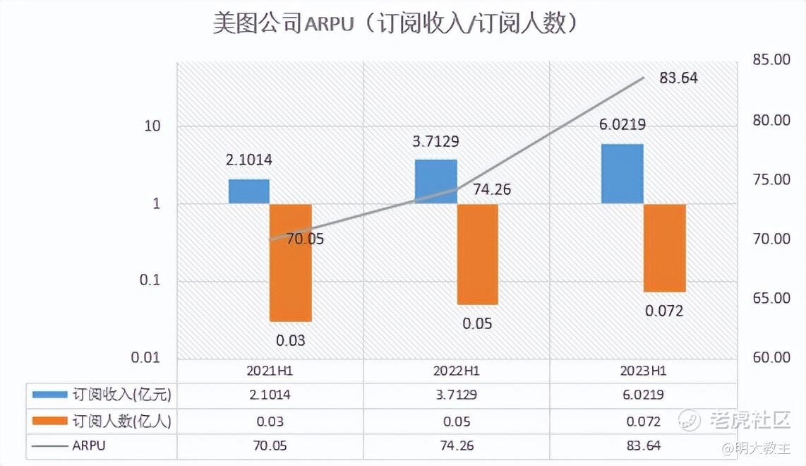 2021中期至2023年中期,美图订阅业务ARPU逐步由70.05升至83.64。除了因应用增加带动订阅价格增长外,产业级客户导入也拉高了美图ARPU。