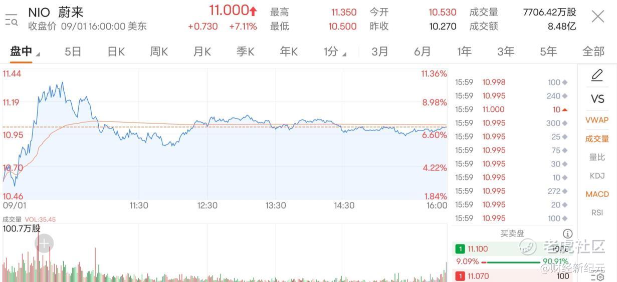 这个消息公布后,蔚来美股1日当晚开盘大涨,盘中一度涨超10%,收盘涨7.11%。