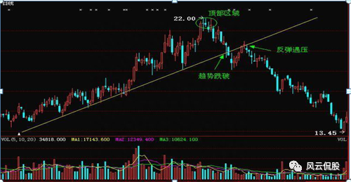 (上升趋势转变为下降趋势 跌破-反抽-无法突破-确定新趋势)