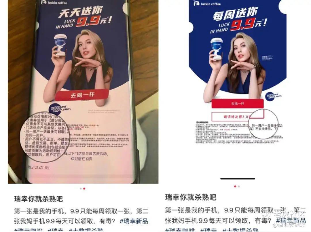 即使是9块9的活动,也已经有不少网友在社交平台上分享,存在杀熟问题,“我的活动页面显示每周领一张,但我妈显示每天一张券。”