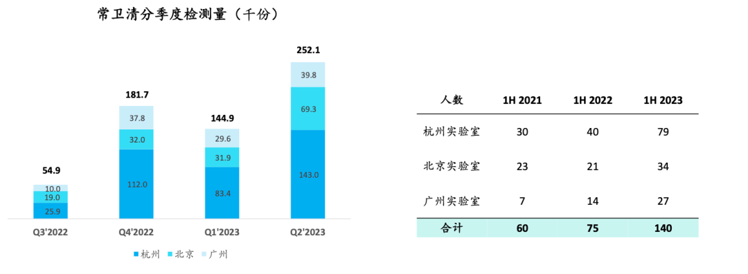 P48的测算,核心是用了人数和检测能力上限来作为分析依据,这个逻辑倒是没啥问题。但是,诺辉是公布了自己实验室员工数和实际检测数的(如下,这个数据不太好造假),好歹咱也更新下呗。不然这个分析结论怎么看都站不住脚。