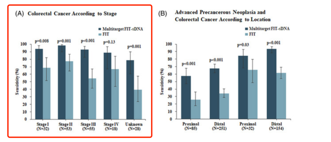 敏感性不错,但是出现了分期倒挂,即对晚期CRC 敏感性低于早期