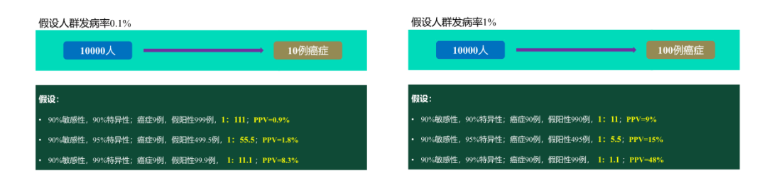 然后进一步解释了下为什么这么高的Prevalence 下 PPV 是跟真实世界情况失准的。