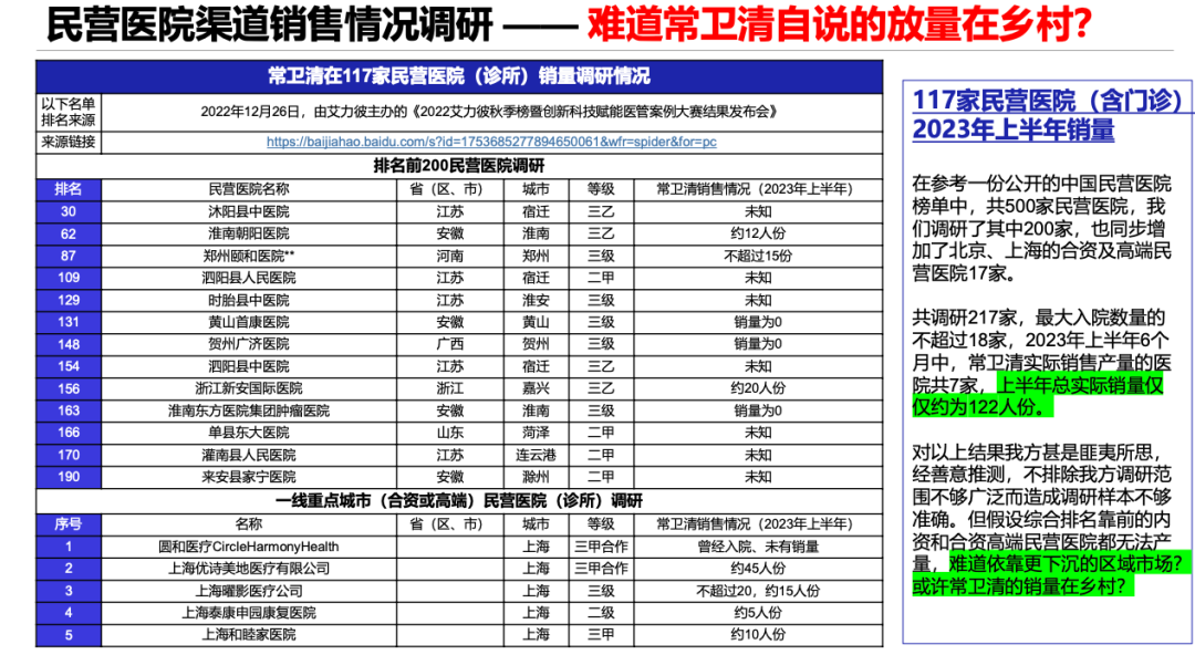 P16用报告里这个角度的数据是不严谨的,要更好的说明早筛在公立和民营医院的市场体量差异,用年体检人次数的排名更靠谱,虽然结论没变。相比起来 P27 那个采访对象说的还算沾边。
