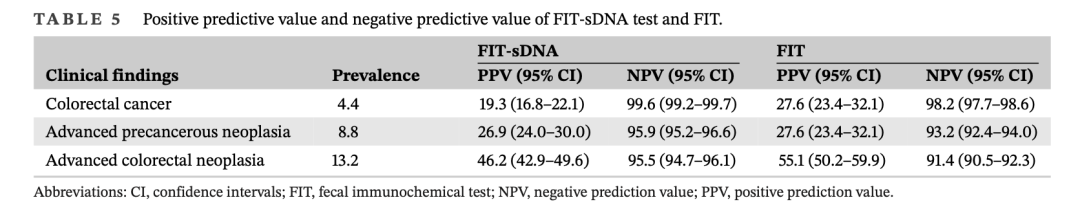 整体看,多靶点粪便免疫化学和DNA联合检测对结直肠癌、进展性腺瘤、结直肠癌或进展性腺瘤的阳性预测值分别为19.3%、26.9%和46.2%,也就是其检测为阳性的患者中,仅有19.3%的患者为结直肠癌、26.9%的患者为进展性腺瘤、46.2%的患者为癌或进展性腺瘤。说实话,单癌检测,这个PPV 很好了。前提是基于 4.4%的发病率,这哪是高危人群啊(这句话自行脑补语气和含义)