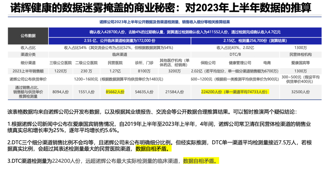 P40是核心证据,数据计算的问题不大,问题出在质疑上,诺辉的表述口径是“临床渠道是收入最大且增长最快的渠道;DTC是收入第二大且增速第二大的渠道”,并没有提检测量的对比,这里强行“自相矛盾”有点强行。